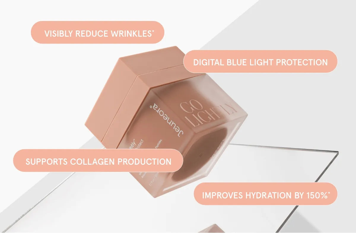 GoLightly is formulated with peptides and other botanical ingredients that support collagen production to visibly reduce signs of ageing - including visibly reducing wrinkles in just 2 weeks*.