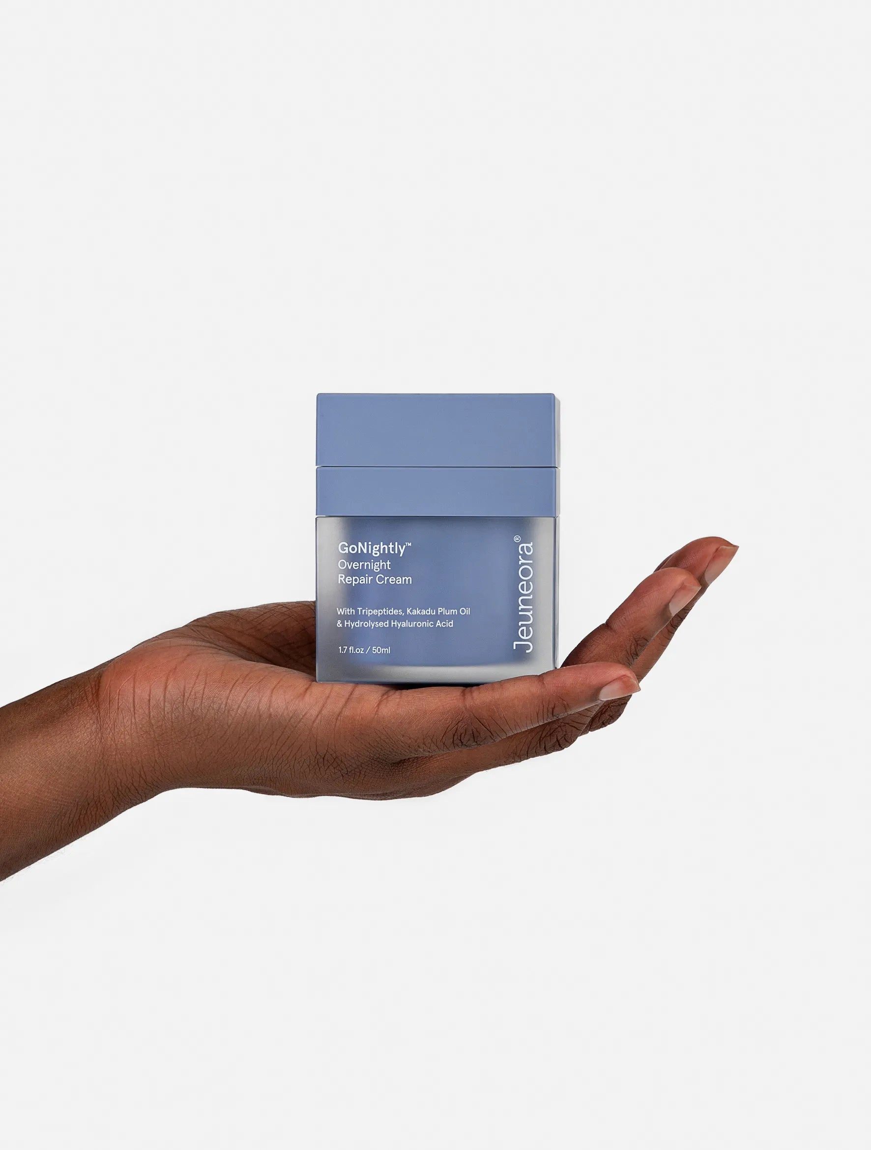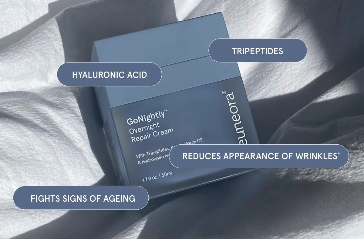 A night cream's main function is to hydrate skin and keep moisture locked in. GoNightly also contains active ingredients to support skin barrier health and visibly reduce the appearance of the signs of ageing.